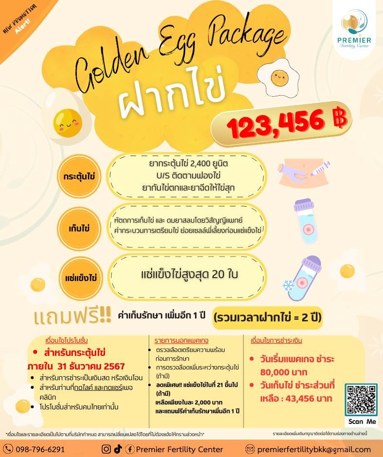 ⭐️ แช่แข็งไข่ 3 ปีแรก โดยไม่มีค่าใช้จ่าย (มูลค่า 26,000 บาท)